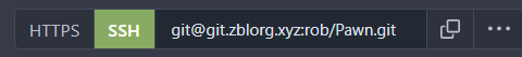 clone_failed R: Assurez-vous d'avoir bien pris l'URL SSH du projet, et non l'URL HTTPS. L'URL SSH ressemble à git@git.zblorg.xyz:rob/Pawn.git tandis que le lien URL HTTPS ressemble à https://git.zblorg.xyz/rob/Pawn.git. Le lien exacte pour cloner le dépôt sur trouve sur la page https://git.zblorg.xyz/rob/Pawn.