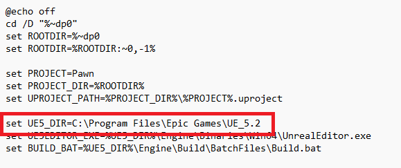 9. Modifiez la 10e ligne (la variable UE5_DIR) et remplacez le chemin d'accès du moteur par le votre.